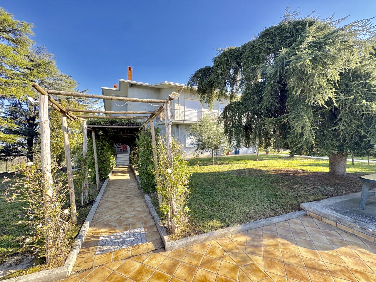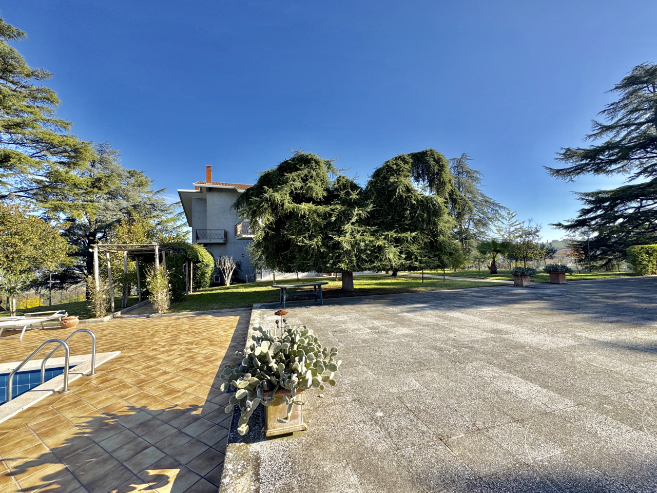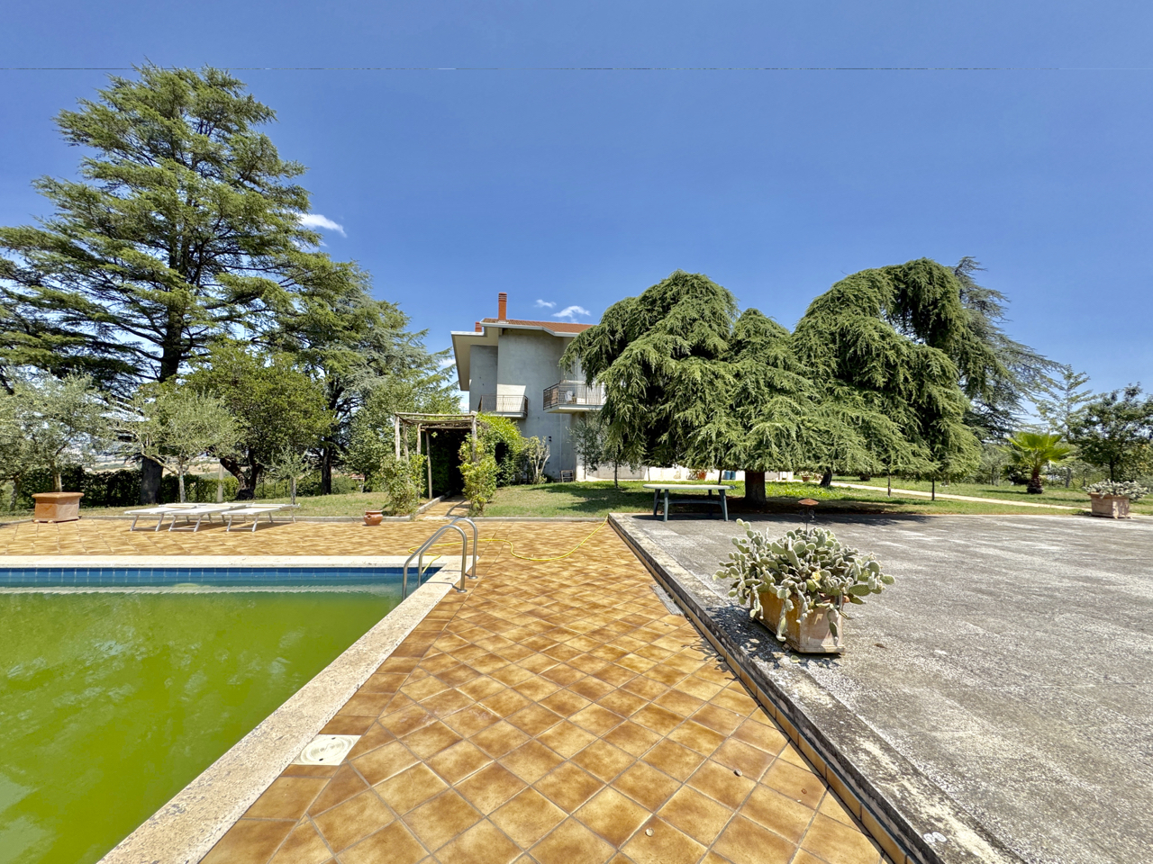 Vicinissima a Benevento, in posizione panoramica immersa nel verde, proponiamo splendida villa accessoriata con piscina e circostante lotto a verde di 3600 mq con area relax, patio/cucina in muratura, area tennis, spogliatoio e bagno. Ampissima superficie residenziale su due livelli oltre piano mansardato, distribuita al piano terra da ingresso, salone doppio, soggiorno con camino, due camere e bagno; al piano superiore cinque camere e tripli servizi, il tutto corredato da logge e balconate. Completano garage, cantina, legnaia e spazi di deposito al piano seminterrato.