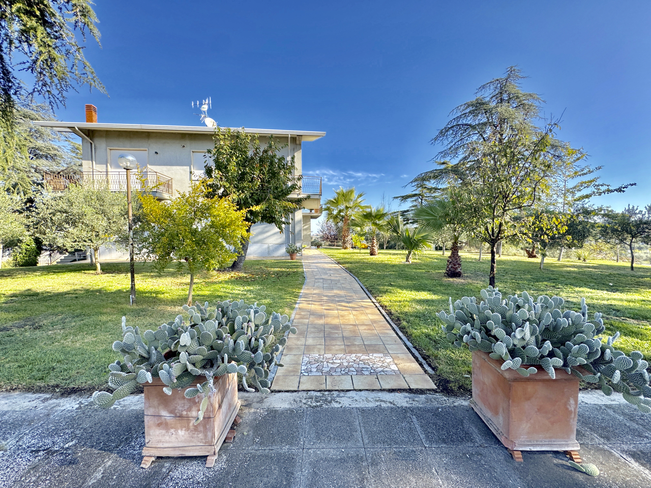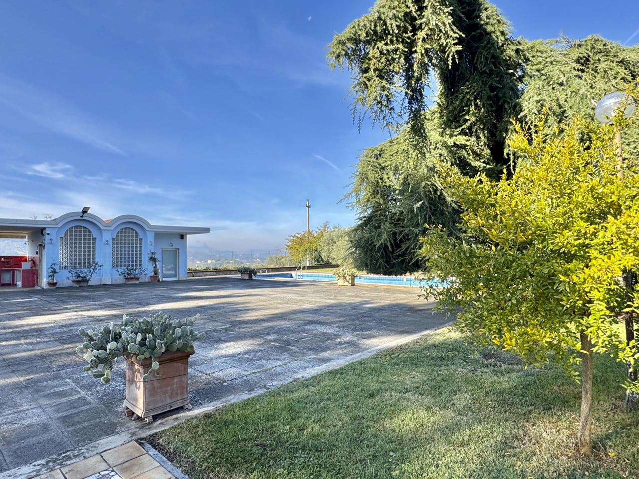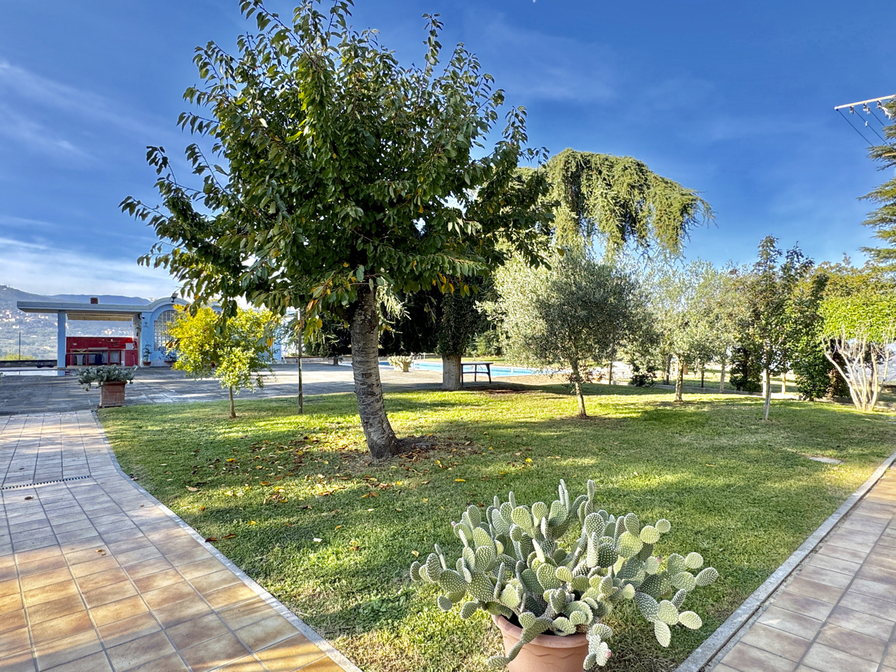 Vicinissima a Benevento, in posizione panoramica immersa nel verde, proponiamo splendida villa accessoriata con piscina e circostante lotto a verde di 3600 mq con area relax, patio/cucina in muratura, area tennis, spogliatoio e bagno. Ampissima superficie residenziale su due livelli oltre piano mansardato, distribuita al piano terra da ingresso, salone doppio, soggiorno con camino, due camere e bagno; al piano superiore cinque camere e tripli servizi, il tutto corredato da logge e balconate. Completano garage, cantina, legnaia e spazi di deposito al piano seminterrato.
